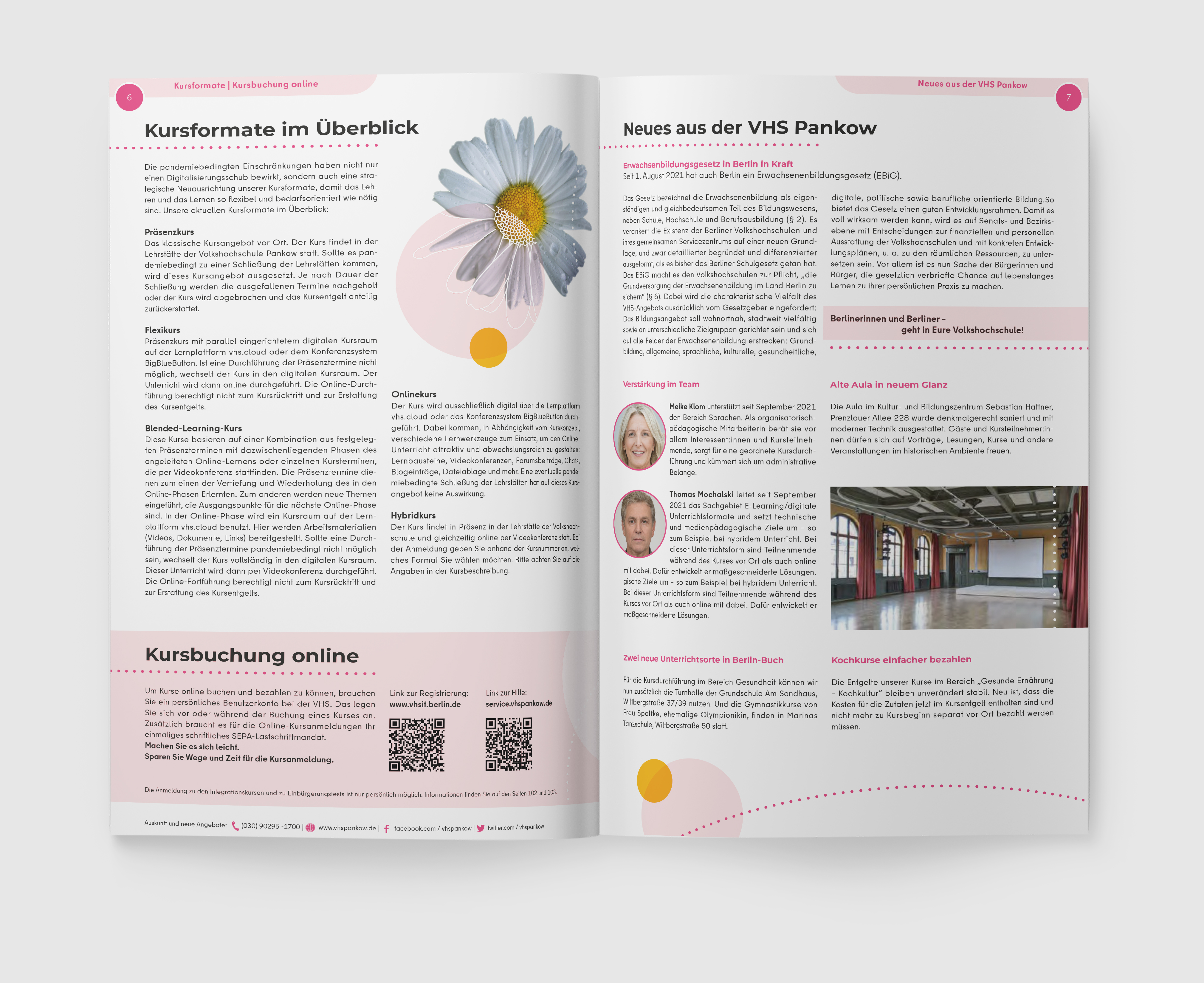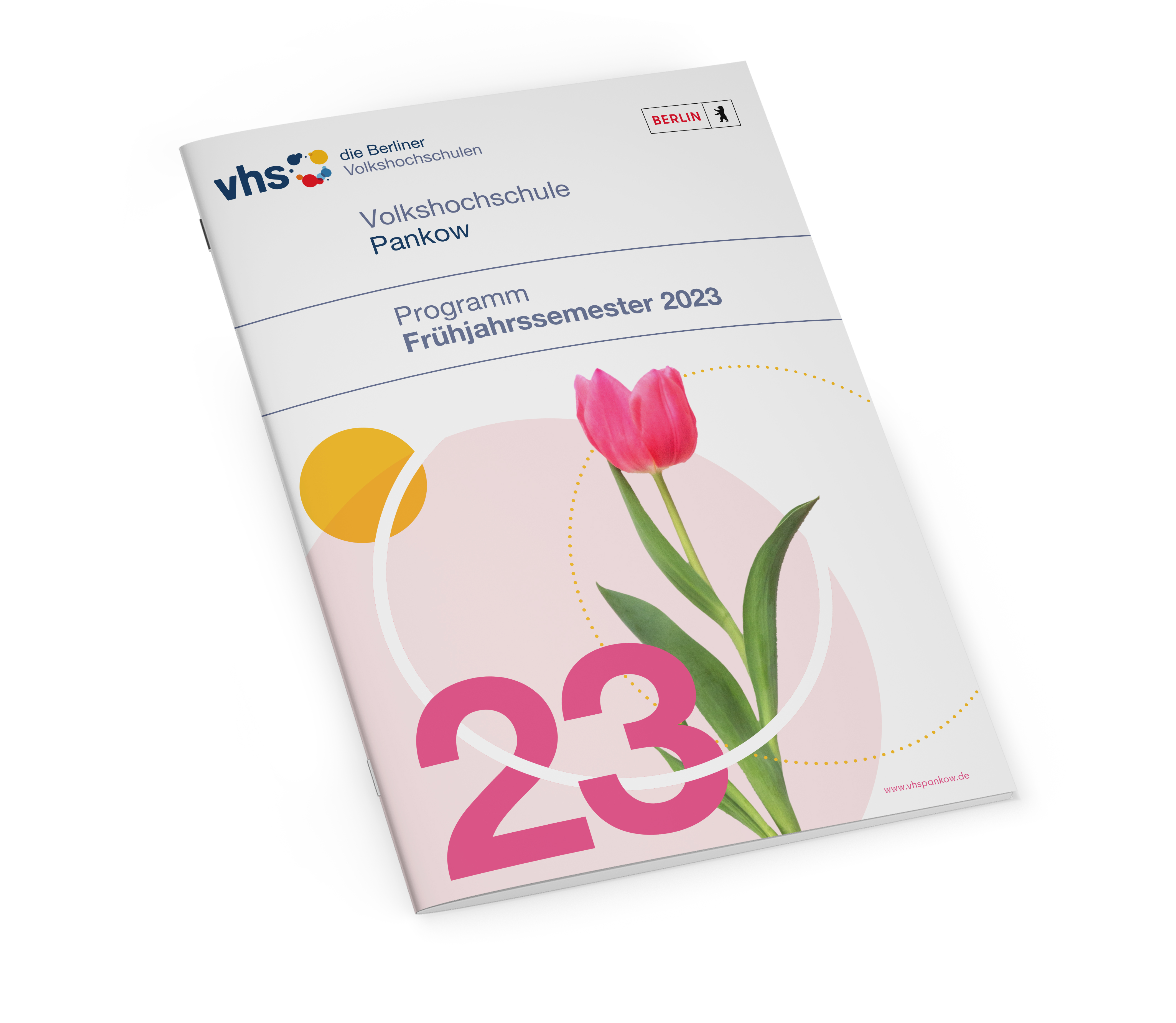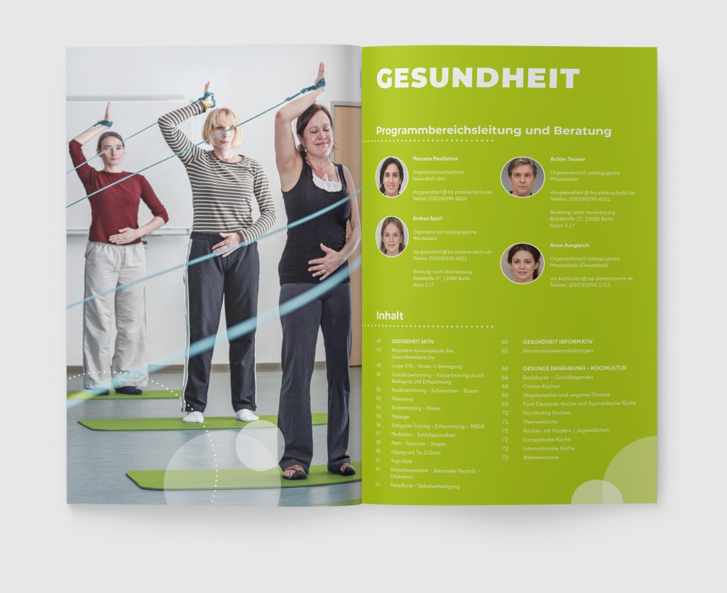 Für das gedruckte Programmheft der Volkshochschule Pankow wurde ein neues Design erstellt. Vorgegeben war die für Pankow typische florale Bildwelt.